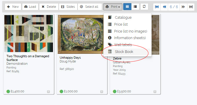 The upgraded Stock Book can now be run from the REPORTS section with a filter for a single Artist.